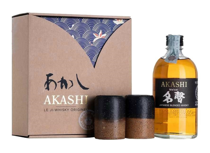 Confezione con una bottiglia cl.50 + due bicchieri. Gradazione alcolica: 40% vol. Prodotto in Giappone. Il Whisky Meisei Akashi è uno dei pregiati distillati di malto giapponese della White Oak Distillery. Questa distilleria sorge ad Akashi, nella costa sud del Giappone; l'azienda è oggi considerata universalmente la principale produttrice di distillati di malto del Sol Levante. Il whisky in questione è prodotto in limitati quantitativi, al fine di garantire una produzione sempre di altissima qualità; il processo creativo, infatti, è seguito attentamente, in ogni sua fase, dal personale esperto dell'azienda. Per realizzarlo si utilizzano grano e malto d'orzo: questo cereale cresce rigoglioso nell'area di Akashi, grazie al clima umido prodotto dalla vicinanza al mare. Superate le fasi del maltaggio e dell'infusione, il mosto è posto per qualche giorno a fermentare con i lieviti ed è infine distillato. Prima di essere imbottigliato il whisky è lasciato ad invecchiare per cinque anni all'interno di botti di rovere americano. Il Whisky Meisei Akashi così ottenuto è un distillato duraturo, morbido e ben equilibrato. Colore ambrato, abbastanza secco, con note di vaniglia, intenso ed elegante. Straordinario.