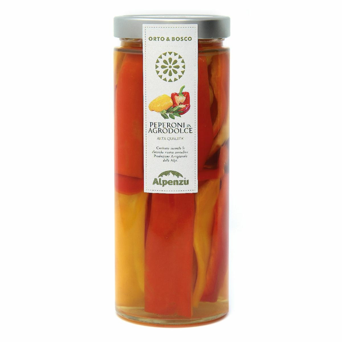 Gr.1000 Questa antica ricetta in agrodolce è preparata solo con peperoni che presentano una forma compatta e una polpa consistente con un gusto delicato. Consigli per l'utilizzo: ideale come contorno a secondi piatti di carne, come antipasto con l'aggiunta di filetti di acciuga o come aperitivo per farcire tartine. Ingredienti: Peperoni 55%, acqua, aceto di mele della Valle d'Aosta, zucchero, sale, alloro, pepe nero. Prodotto Senza Conservanti e Senza Coloranti. Prodotto GLUTEN FREE. Con aceto di mele della Valle d'Aosta. Conservare in luogo fresco ed asciutto. Dopo l'apertura conservare in frigorifero a una temperatura compresa tra +2°/+6° C.