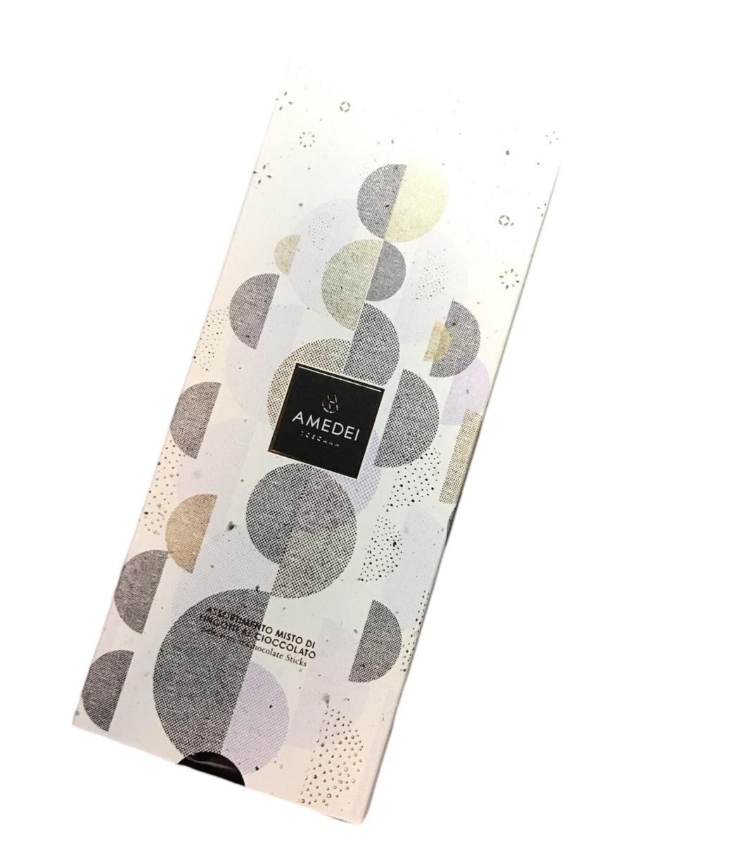 Amedei scatola armonia. Assortimento lingotti cioccolato gr. 120. Questa confezione contiene: -Quattro lingotti di cioccolato al latte con granella al caffè. -Quattro lingotti di cioccolato bianco con granella di lamponi. -Quattro lingotti di cioccolato fondente extra 70%.