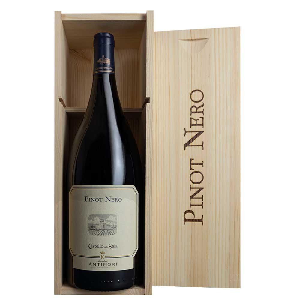 Formato bottiglia: cl.150 Con cassa legno. Rosso nella terra dei bianchi Il Pinot Nero trova al Castello della Sala, storica terra dei bianchi, un espressione autentica e tipica, capace di raccontare il profondo carattere territoriale.