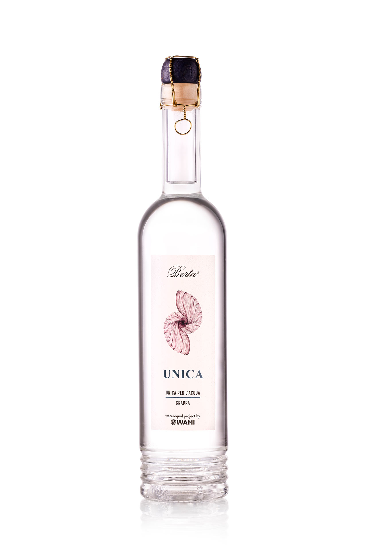 Formato bottiglia: cl.50 Gradazione alcolica: 43% vol. Prodotto in Italia. Con astuccio. Vitigno: Selezione Berta. Sistema di Distillazione: Discontinuo in caldaie di rame a vapore. Affinamento: Acciaio inox per un periodo di 3-6 mesi. Colore: Limpida, incolore. Profumo: Elegante e armonioso. Sapore: Secco, austero.