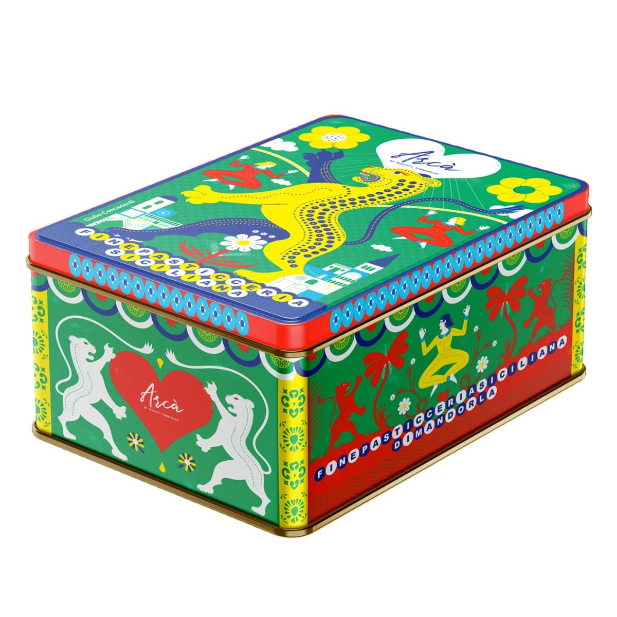 Gr. 520. Ogni singola latta contiene 520 gr di dolcini misti, tra i Ricci alle mandorle e al Pistacchio, i Cosi chini, i Zuccotti, le Praline al cocco e gli ultimi nati della nostra gamma produttiva, i Cantucci con mandorle tostate e Cantucci al cioccolato di Modica IGP. Il “Gattopardo”: rappresenta tanti animali in uno. Principalmente sono quattro: il leone, simbolo di potenza e di forza, il ghepardo, simbolo di eleganza e raffinatezza, l’ocelot, simbolo di prontezza d’animo e il leopardo simbolo di intelligenza.