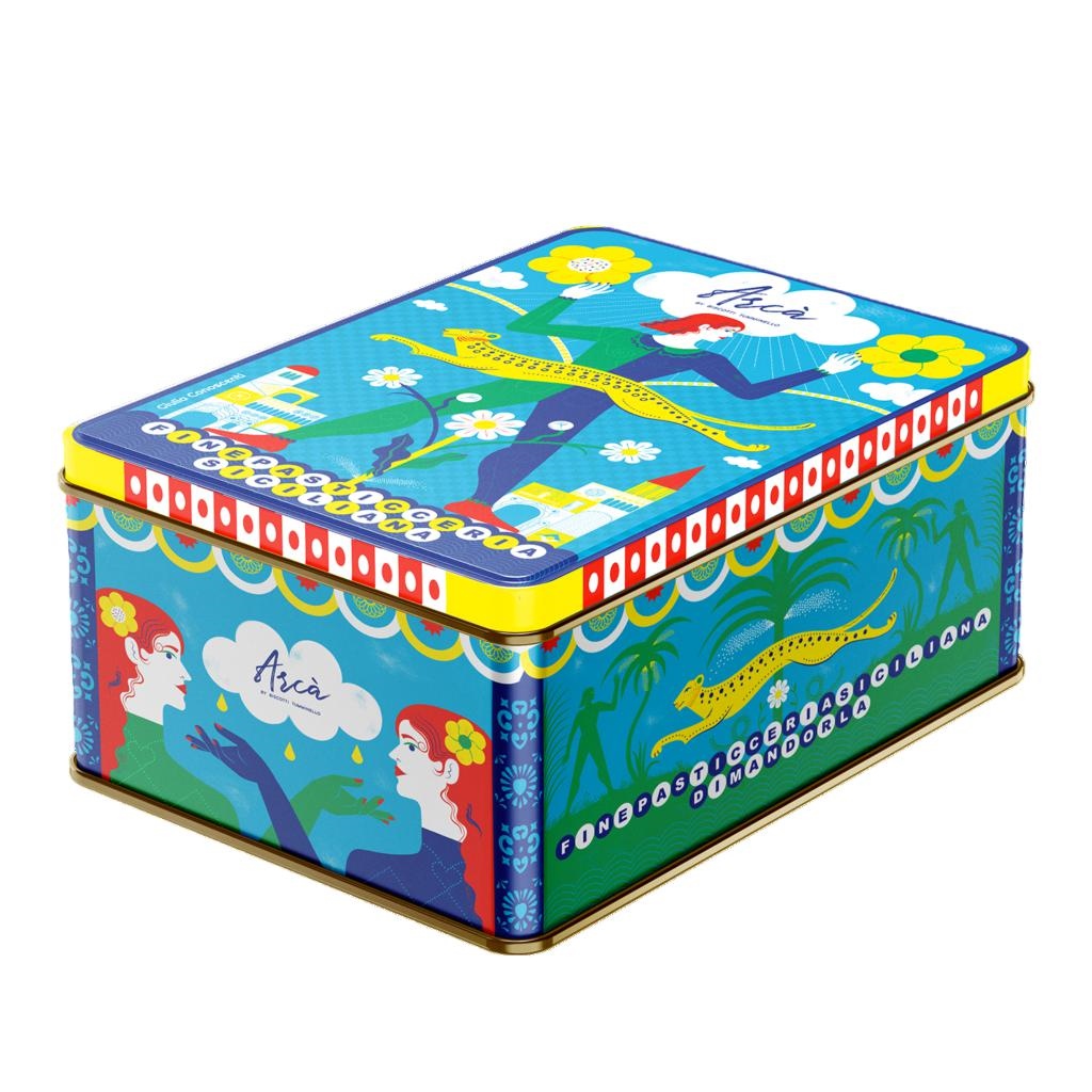 Gr. 520 Ogni singola latta contiene 520 g di dolcini misti, tra i Ricci alle mandorle e al Pistacchio, i Cosi chini, i Zuccotti, le Praline al cocco e gli ultimi nati della nostra gamma produttiva, i Cantucci con mandorle tostate e Cantucci al cioccolato di Modica IGP. La “MAJARA” : figura femminile della cultura popolare siciliana; non era una strega, piuttosto una fata buona, attingeva la sua forza dalla conoscenza della natura e dalla familiarità con alcuni animali. Era in grado di far scoprire alle persone comuni tutto quello che non avrebbero mai potuto conoscere, le profondità del mare, le stelle nell’universo, tutte le incredibili bellezze del mondo naturale.