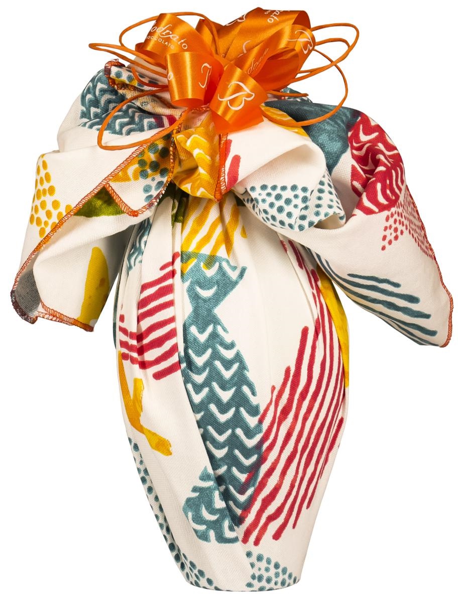Uovo di cioccolato al latte Bodrato da 250 gr con un incarto di tovaglia pesce.
