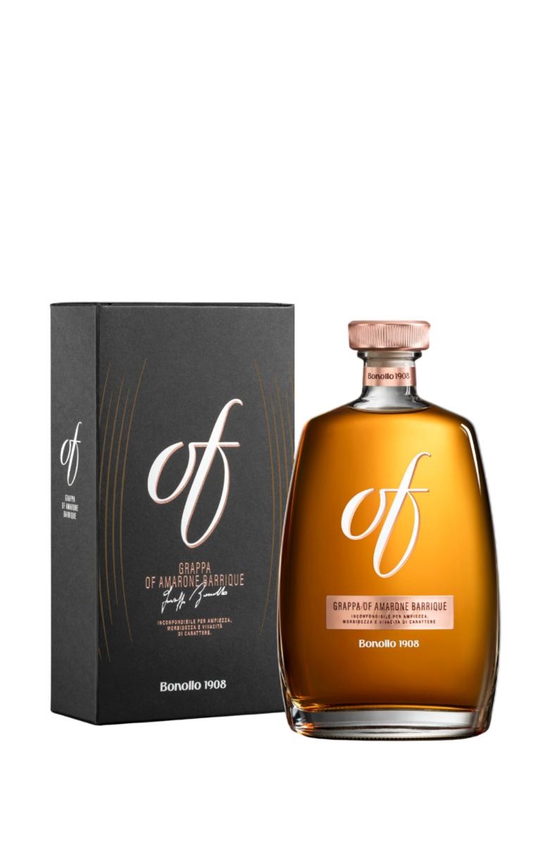 Formato bottiglia: cl.70 Gradazione alcolica: 42% vol. Prodotto in Italia. Con astuccio. Dalle vinacce le cui uve hanno dato origine al vino Amarone della Valpolicella, contraddistinte da una incredibile ampiezza e vivacità di aromi, i maestri distillatori Bonollo hanno dato vita ad un distillato straordinario per ricchezza e vivacità aromatica, armonia e morbidezza. La completa maturità di OF Amarone Barrique viene raggiunta attraverso l’invecchiamento in piccole barrique di rovere francese, in cui avviene la graduale ed armoniosa evoluzione della sua inconfondibile personalità per uno straordinario viaggio sensoriale. Di colore ambrato caldo e intenso, OF Amarone Barrique conquista per l’ampio e vivace bouquet aromatico riconducibile ai sentori tipici di uvetta, fichi, datteri, albicocca, scorza d’arancia essiccata, amaretto, prugna e ciliegia. Al gusto sfodera un notevole carisma dato dall’avvolgenza e dalla morbidezza conferiti dalle calde note speziate riconducibili a vaniglia, cannella, chiodi di garofano, noce moscata, cacao e dalle tonalità che possono ricordare il miele, la prugna cotta, le foglie di tè ed il mallo di noce. Chiude lungo e persistente. Semplicemente inconfondibile.