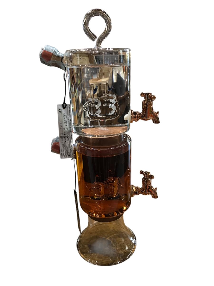 Creazione artistica di vetro soffiato a forma di Colonna Spillatore con all’interno due velieri.