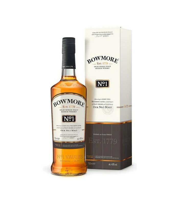 Formato bottiglia: cl.70 Gradazione alcolica: 40% vol. Prodotto in Scozia. Il No. 1 prende il nome dalle leggendarie magazzino No.1 Vaults dove si celano e affinano i grandi Whisky. Bowmore ha rilasciato un whisky affinato in botti ex Bourbon, ma non Bourbon qualunque bensì il celebrato Maker's Mark che lascia la sua impronta sul single malt di Islay che può rilasciare le sue note torbate e decise cullate dalla rotondità del rovere ex bourbon. No.1, un nome che ci ricorda che può essere benissimo il nostro numero 1 da provare tra i whisky di Islay. Colore ambrato. Al naso è un vivace tripudio di cannella, vaniglia, rovere che restano avvolte dalle immancabili note affumicate. Al palato è rotondo e pieno, con note mielate e vanigliate, oltre ai fiocchi di cocco tipici dell'affinamento. Finale quasi citrino.