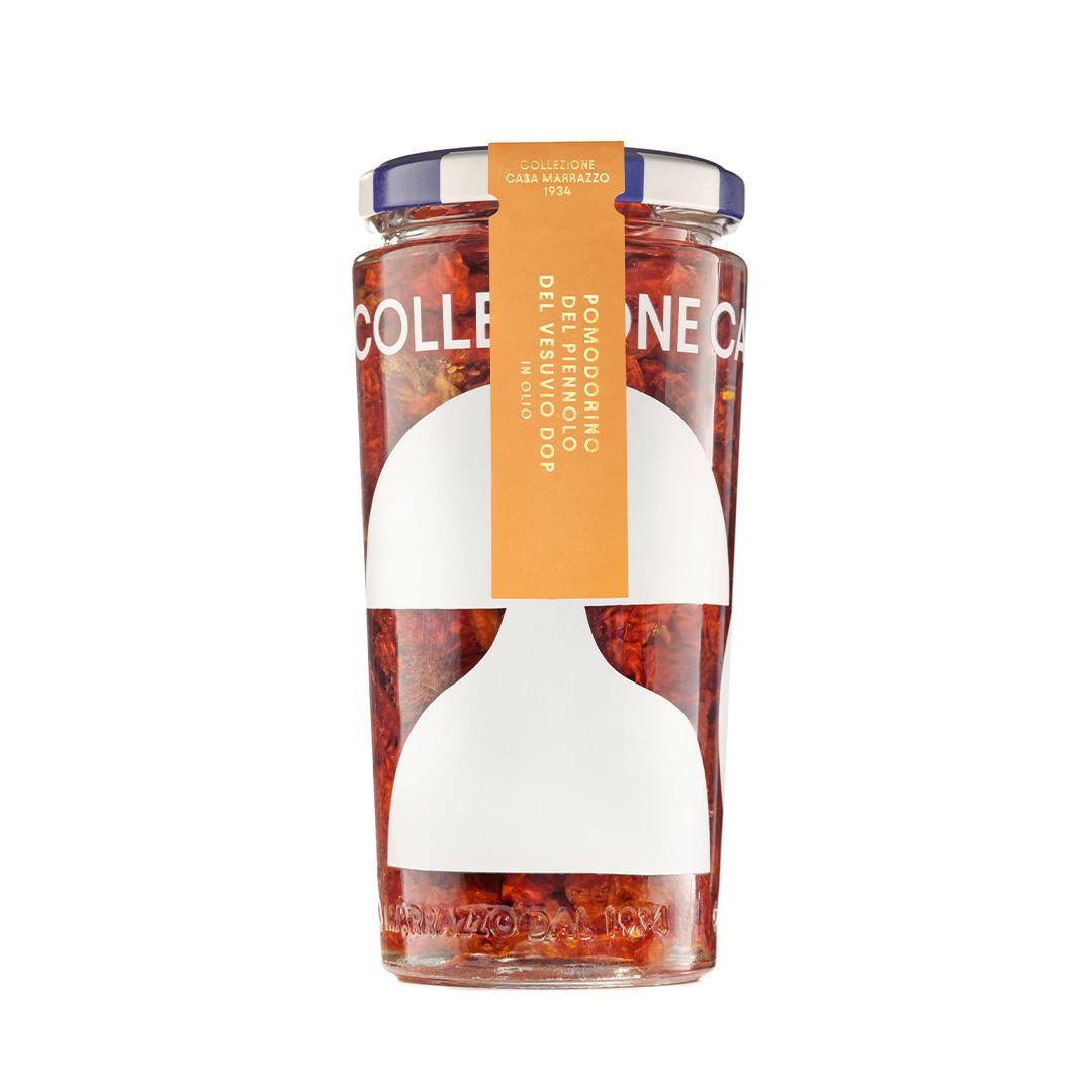 Il Pomodorino del Piennolo del Vesuvio DOP in olio viene realizzato utilizzando uno dei piu` antichi e tipici prodotti dell’agricoltura campana: il pomodoro del Piennolo del Vesuvio DOP. Selezionato e pelato da mani esperte viene conservato come una volta. E’ uno degli ingredienti piu` rappresentativi della cucina mediterranea. Caratteristiche: 100% italiano peso : 300 g Ingredienti: Pomodorini del Piennolo del Vesuvio DOP essiccati al sole, olio di oliva. Conservazione: Consigliamo di conservare il prodotto in un luogo fresco e asciutto, lontano da fonti di calore e dall’esposizione diretta ai raggi solari. Prima di consumarlo, consigliamo di controllare l’integrità della capsula, con l’apposito sistema di sicurezza. Una volta aperto, conservare in frigo a +4°C e consumare entro un massimo di 3 giorni.
