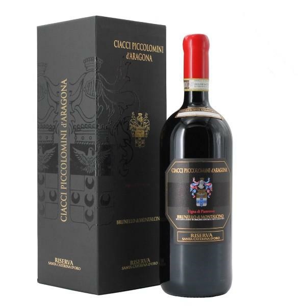 Formato bottiglia: cl.150 Gradazione alcolica: 14,5% vol. Con astuccio. Brunello di Montalcino DOCG Vigna di Pianrosso Riserva Santa Caterina d'Oro La qualità delle uve da destinare alla tipologia Riserva, prodotta solo nelle annate migliori, viene determinata inizialmente con rigorosa selezione manuale nei vigneti di Pianrosso, seguita successivamente da una lunga macerazione sulle vinacce e da un prolungato affinamento in botte e in bottiglia. Vigneti: 11,69 ettari si fregiano della dizione "Pianrosso", situati in terreni di medio impasto e galestro di origine eocenica tra i 240 e i 360 metri s.l.m., dove vengono scelte le migliori uve. Vitigno: 100% Sangiovese Vinificazione, fermentazione ed affinamento: In recipienti di acciaio inox e vasche di cemento vetrificate a temperatura controllata tramite camicie di raffreddamento e piastre ad immersione. Invecchiamento: In botti di rovere di Slavonia da 7,5 a 30 hl per oltre 3 anni ed un affinamento in bottiglia superiore a 12 mesi. Colore: Rosso rubino tendente al granato. Caratteristiche Organolettiche: Profumi intensi, ampi e complessi. Fruttato, speziato, talvolta etereo: le note di frutta matura a bacca rossa si armonizzano piacevolmente con molteplici speziature; al gusto è caldo, armonico con tannini pronunciati ma morbidi; un vino di gran corpo con lunga persistenza gusto-olfattiva che si evolverà ancora con un lungo invecchiamento in bottiglia. Servizio: Stappare un’ora prima della mescita e servire a 18°C in calice di cristallo a forma "ballon". Abbinamento gastronomico: Adatto ad accompagnare principalmente secondi piatti strutturati di carni in salmì, arrosti di cacciagione e selvaggina da pelo. Appropriato con formaggi molto stagionati o degustato solo come vino da meditazione.