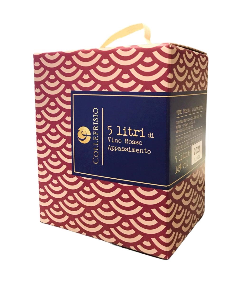 Formato: 5 lt. Uve: 60% Montepulciano d'Abruzzo, 20% Sangiovese, 20% Merlot Vendemmia: Seconda decade di ottobre per il Montepulciano e Sangiovese, secondo decade di settembre per il merlot. Resa media per ettaro: 50Hl Vinificazione: Successivamente ad un parziale appassimento delle uve sulla vite queste vengono piagiate, diraspate per essere avviate alla fermentazione ed ad una lunga macerazione sulle bucce. L'affinamento avviene in acciaio a temperature controllate. Colore rosso rubino, con leggeri riflessi violacei. Al naso rosa canina e viola selvatica, fruttato di frutta rossa sottospirito e prugna matura, leggero sentore di spezie. Vino complesso, di ottima struttura, morbido e avvolgente. Persistente al palato.