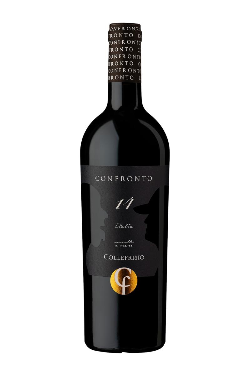 Confronto è lo spazio di incontro tra due culture del vino, l’idea di riunire due prestigiosi vitigni come Montepulciano e lo Zinfandel in un solo vino nasce da Amedeo De Luca e Ralph Falbo per celebrare il punto di contatto tra le tradizioni del ‘vecchio mondo’ e le visioni enoiche del ‘nuovo mondo’. Un packaging studiato per attirare l’attenzione lo ha reso un prodotto premiato e ad alta riconoscibilità internazionale. Uve: Montepulciano d’Abruzzo, Primitivo di Manduria. Vendemmia: Seconda metà di ottobre per il Montepulciano e seconda metà di settembre per il Primitivo. Resa media per ettaro: 40 hl. Vinificazione: Lunga macerazione delle bucce in acciaio. Successivamente vi è l’affinamento per 10 mesi in bottiglia. Degustazione: Colore rosso rubino scuro, fruttato con sentori di prugna, mora e marasca, leggermente speziato. Vino complesso, di grande corpo, morbido e vellutato. Persistente al palato.