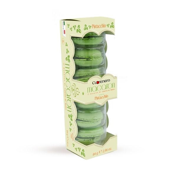 L'elegante box di macarons di Cuorenero contiene 6 macaron alla morbida crema di pistacchio, perfetti per accompagnare tè o caffè in un pomeriggio!