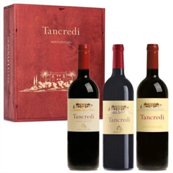 La cassetta contiene: 1 bottiglia di Tancredi 2013 + 1 bottiglia di Tancredi 2014 + 1 bottiglia di Tancredi 2016.