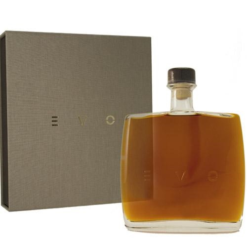 Formato bottiglia: cl.100 Tipologia prodotto: grappa riserva Gradazione: 42% Vol. Con cofanetto. Sistema di distillazione: discontinuo a bagnomaria e con caldaiette a corrente di vapore. Gli impianti operano in ambienti sotto vuoto Vinacce: blend di Cabernet Sauvignon, Glera ed Incrocio Manzoni Legni di affinamento: barriques di legni autoctoni diversi. Castagno, Ciliegio, Faggio Tempi di affinamento: mediamente quattro anni Colore: bruno intenso con riflessi ambrati Profumo: Al naso si percepiscono note di uva passita miste a sensazioni di liquirizia, noce, cannella e vaniglia. Un “dolce” aroma di dattero maturo, creme-caramel, torrone e carruba, caratterizzano ulteriormente l’elegante bouquet. Non si avverte “pungenza” alcolica Gusto: fine ed intenso, con sentori di zucchero filato, vaniglia, prugna matura e note agrumate. Un gusto complesso e vellutato. Retro-olfatto: toni di frutta essiccata e note speziate vengono morbidamente avvolte da una piacevole sensazione alcolica. EVO è una grappa (distillato di vinaccia) che per legge viene definita “riserva” poiché riposa oltre 18 mesi in botti di legno. Le botti utilizzate sono barriques di legni diversi (castagno, ciliegio, faggio) e non necessariamente di primo ciclo. Ciascuna tipologia di legno contribuisce individualmente a conferire una specifica caratterizzazione del prodotto. EVO non contiene coloranti aggiunti. La sua “nuance” è il risultato della permanenza in barrique. Le modalità di trattamento dei contenitori e le diverse tipologie dei legni usati, cedono a questo distillato sostanze organiche e coloranti inaspettate. Grazie a nuove tecniche di lavorazione, EVO ha un contenuto di olii essenziali estremamente ridotto (“tracce”), favorendo una facile bevibilità ed aumentandone la digeribilità; presenta inoltre quantità di “alcol metilico” ai minimi di legge.