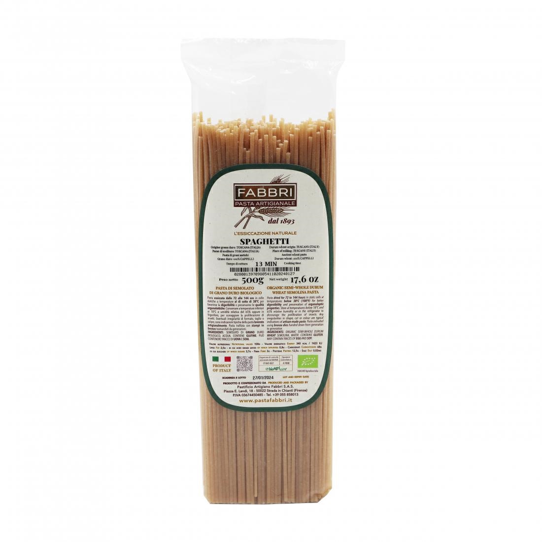 CARATTERISTICHE - Pasta di semolato biologico, 100% grano antico Cappelli (Origine: Toscana). Superficie ruvida, data dalla trafilatura in bronzo. Tempo di cottura: 13 minuti. TEMPO DI ESSICCAZIONE - Pasta essiccata per 5 giorni (120 ore) a temperature inferiori ai 38° centigradi. PESO NETTO - 500 g. Questo formato è adatto ad un’infinità di sughi cremosi che vanno dalla carne (fatti all’amatriciana o alla carbonara per esempio) al pesce (preparati alle vongole, allo scoglio…). INGREDENTI: Semolato di grano duro biologico, acqua. Contiene glutine. Può contenere tracce di uova, soia e senape. VALORI NUTRIZIONALI MEDI PER 100 g energia 1423 kJ / 340 kcal grassi 2,5 g di cui: acidi grassi saturi 0,8 g carboidrati 68 g di cui: zuccheri 3,7 g fibre 3 g proteine 12,5 g sale 0,02 mg
