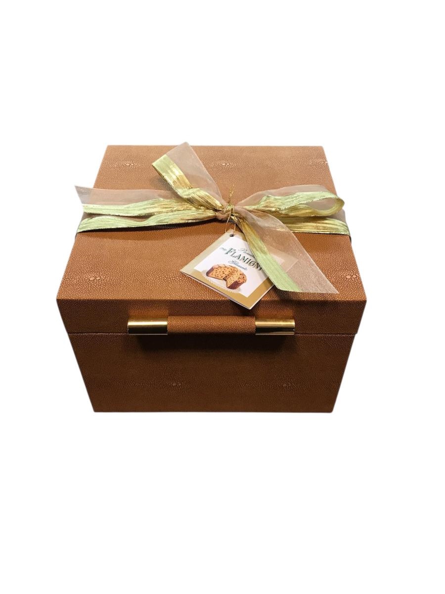 Si addice a un regalo? I nostri Panettoni sono tutti pensati per aiutare i nostri clienti a fare dolci regali ai propri cari. Confezioni come quella del nostro Glassato sono rifinite a mano dalle nostre artigiane per rendere ogni prodotto unico e autentico. Il tutto contenuto in un'elegante cappelliera in pelle.