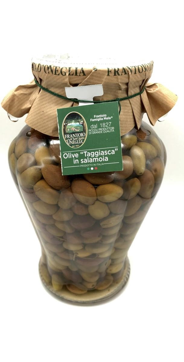 Gr.1800 Olive Taggiasche, una caratterisca delle colline di Oneglia, le migliori, tra quelle raccolte a mano, vengono preparate in salamoia con acqua, sale, timo, alloro, rosmarino; gradevole gusto tendente al dolce e piacevolmente fruttato. Queste piccole ma saporite olive si trovano solamente nella provincia di Imperia nella Riviera di Ponente. Stuzzichino ideale con l’aperitivo, ottime per la focaccia, la pizza, le insalate, gustosissime nel sugo di pomodoro, nel coniglio in umido e con i pesci al forno.
