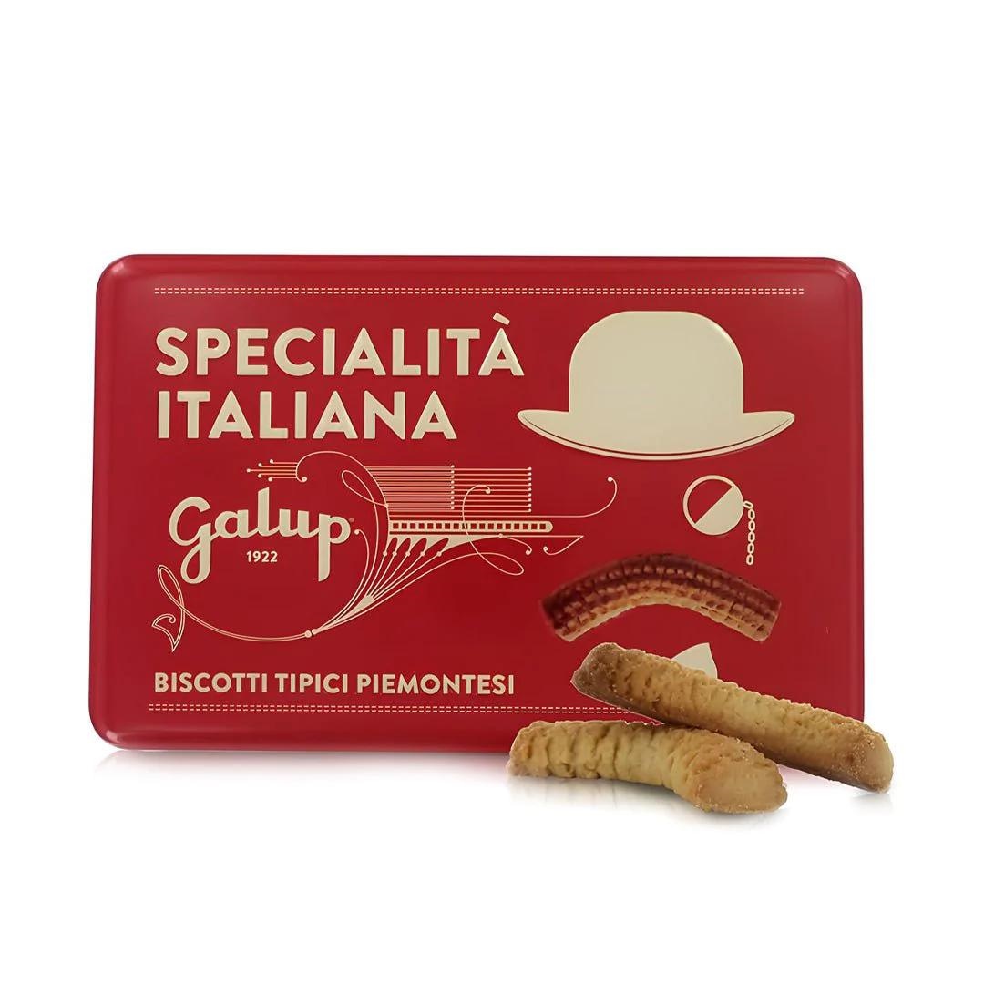 Gr.250 Nati alla fine dell’800 a Casale Monferrato, i biscotti Krumiri sono una leggenda. Galup si ispira alla ricca tradizione dolciaria piemontese per offrire una scelta di grandi classici destinati a portare un nuovo tocco di dolcezza nelle vostre giornate. La confezione è di pregio, una scatola di latta rossa litografata con elementi in rilievo, che conserva le caratteristiche del loro sapore anche quando viene aperta. Un regalo speciale per ogni occasione.