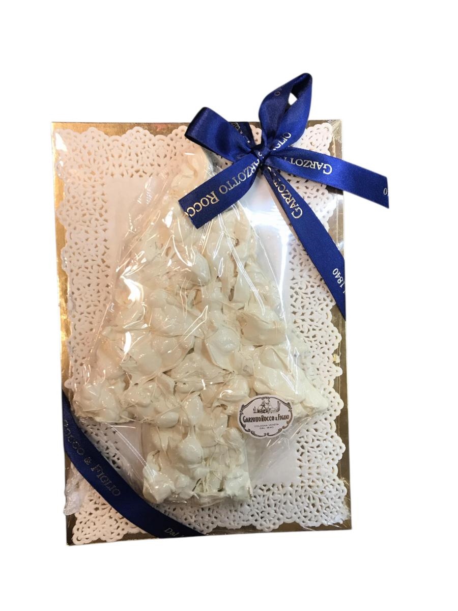 Il pino, uno dei simboli del Natale qui ritorna, confezionato in cellophane trasparente.