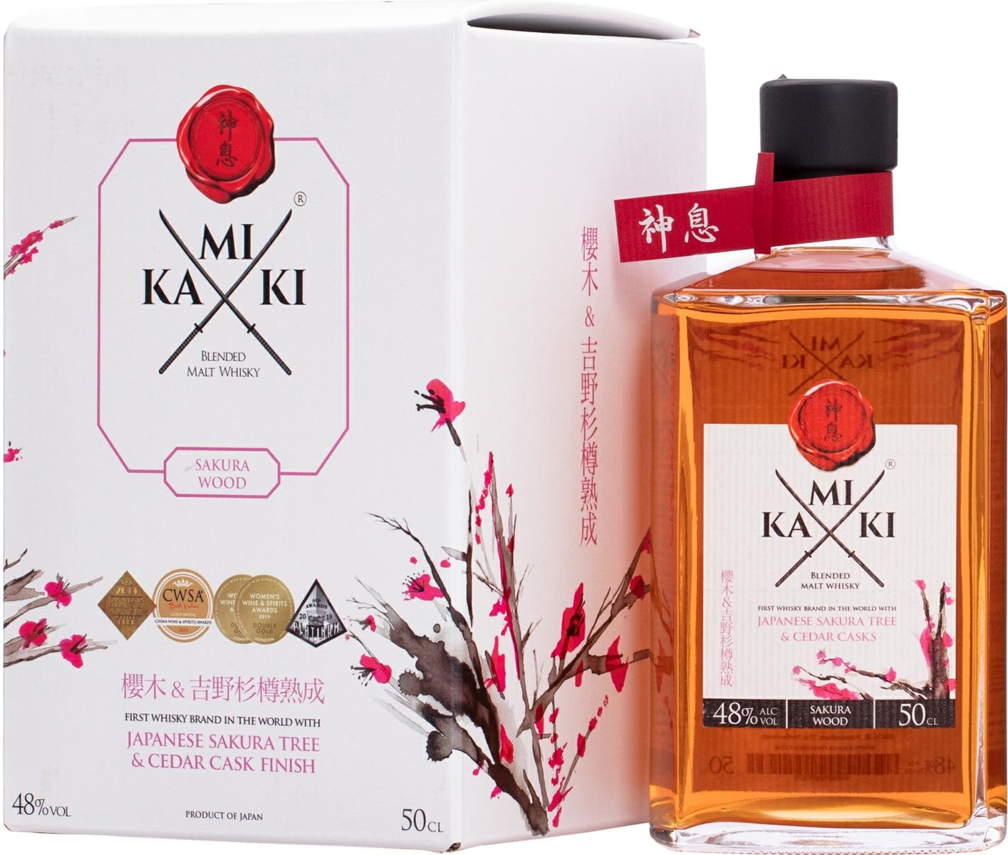 Formato bottiglia: cl.50 Gradazione alcolica: 48% vol. Con astuccio. Kamiki Sakura Wood è un Blended Malt Whisky, ottenuto dalla migliore selezione di Single Malt provenienti dal Giappone e dal resto del Mondo. Dopo che il Blend viene ultimato, il Whisky viene fatto affinare in botti di Yoshino Sugi, il legno di Cedro Giapponese e successivamente, per la prima volta nel mondo, il whisky matura in botti di legno di sakura, il pregiato legno di ciliegio Giapponese. L'albero Sakura è estremamente famoso in Giappone. Simboleggia l'inizio della primavera ed è intrinsecamente connesso a "mono no aware" un termine giapponese che simboleggia la consapevolezza della mortalità. Il legno di Cedro invece è molto noto perchè utilizzato per migliaia di anni per la costruzione dei templi in Giappone e per le sue qualità fragranti e morbide, capaci di calmare mente e corpo. Colore giallo tendente al ramato con riflessi mogano intenso. L'olfatto è intenso, di grande fascino, con piacevoli note di banana matura, castagne candite, cannella e sfumature di pino, seguono ricordi legnosi che ricordano quasi una sauna. Al palato non è da meno, equilibrato, di grande morbidezza e avvolgente, elegante, con note di ciliegie dolci, spezie delicate e legno sandalo. Con l'aggiunta di un pò d'acqua, emergono note di pepe e altre note di estrema eleganza. Finale lungo con persistenti note floreali.