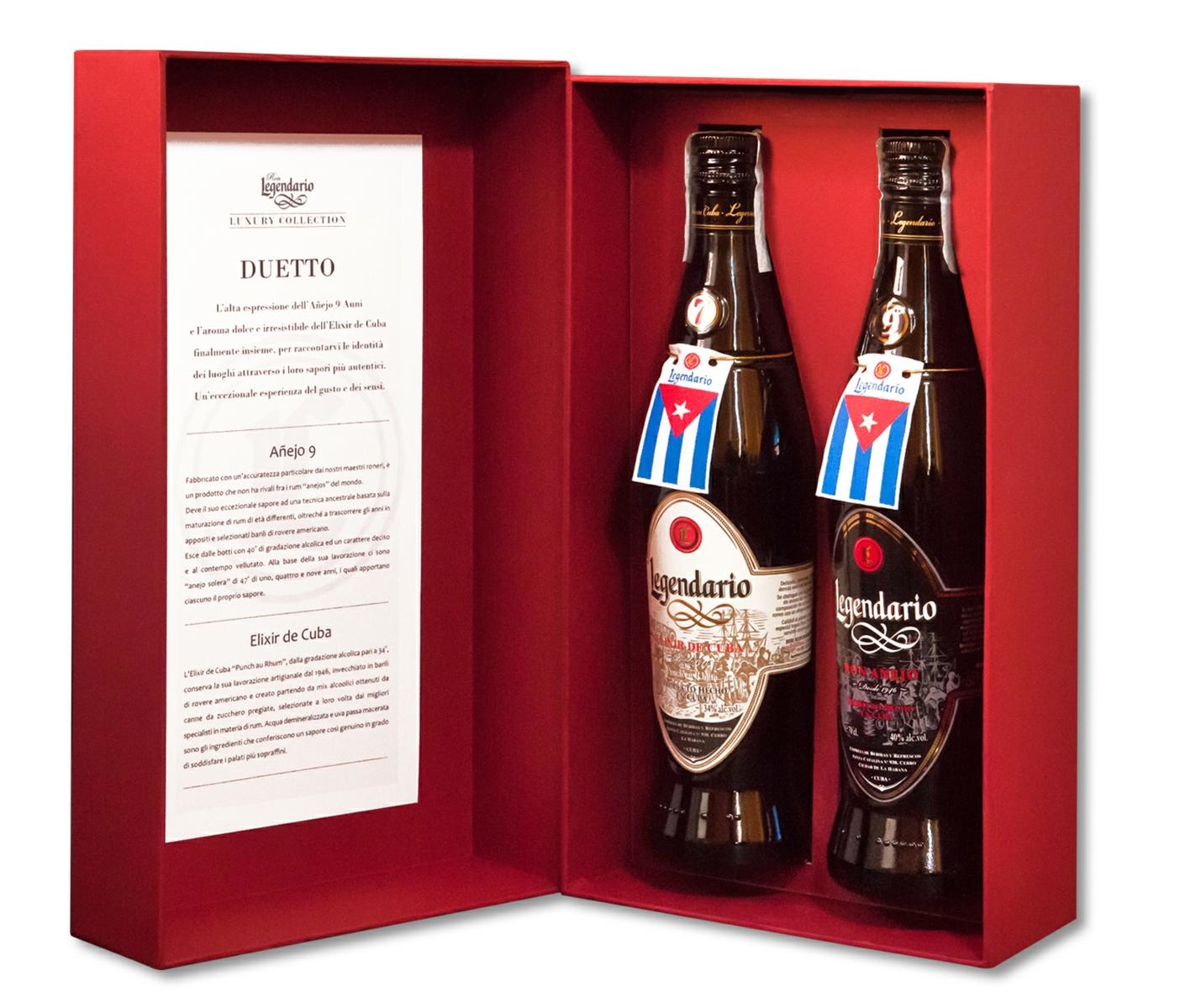 Contenuto: 1 bottiglia di Ron Añejo 9 anni 40% vol. 70 cl 1 bottiglia di Elixir de Cuba 7 anni 34% vol. 70 cl L’alta espressione dell’Añejo 9 Anni e l’aroma dolce e irresistibile dell’Elixir de Cuba finalmente insieme, per raccontarvi le identità dei luoghi attraverso i loro sapori più autentici. Un’eccezionale esperienza del gusto e dei sensi.