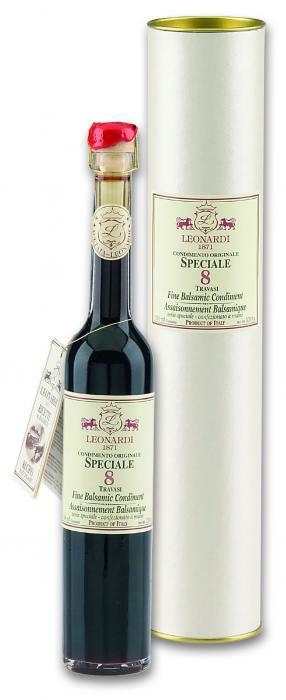 Formato bottiglia: ml.100 Con tubo in latta. Mosto cotto acetificato e affinato 8 anni in botti di legno, molto versatile, accompagna con brio le insalate, le verdure cotte o crude, le grigliate, gli arrosti, i bolliti, i salumi, le frittate, i formaggi teneri e stagionati...