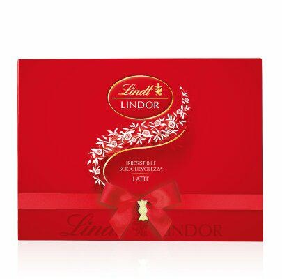 Lindor Scatola Latte 350gr. Ingredienti: zucchero, grasso vegetale (cocco, palmisti), burro di cacao, pasta di cacao, latte intero in polvere, latte scremato in polvere, lattosio, burro anidro, emulsionante (lecitina di soia), estratto di malto d’orzo, aromi. Può contenere nocciole ed altra frutta a guscio. Esterno: Cioccolato al latte - Cacao: 32% minimo. Se regalate Lindor a qualcuno è perché qualcuno se lo merita davvero. Una confezione bellissima, elegante e curata in ogni dettaglio che racchiude 350 grammi di Lindor al latte, un vero trionfo di irresistibile scioglievolezza. Ora pensateci bene: siete proprio sicuri di volerla regalare?