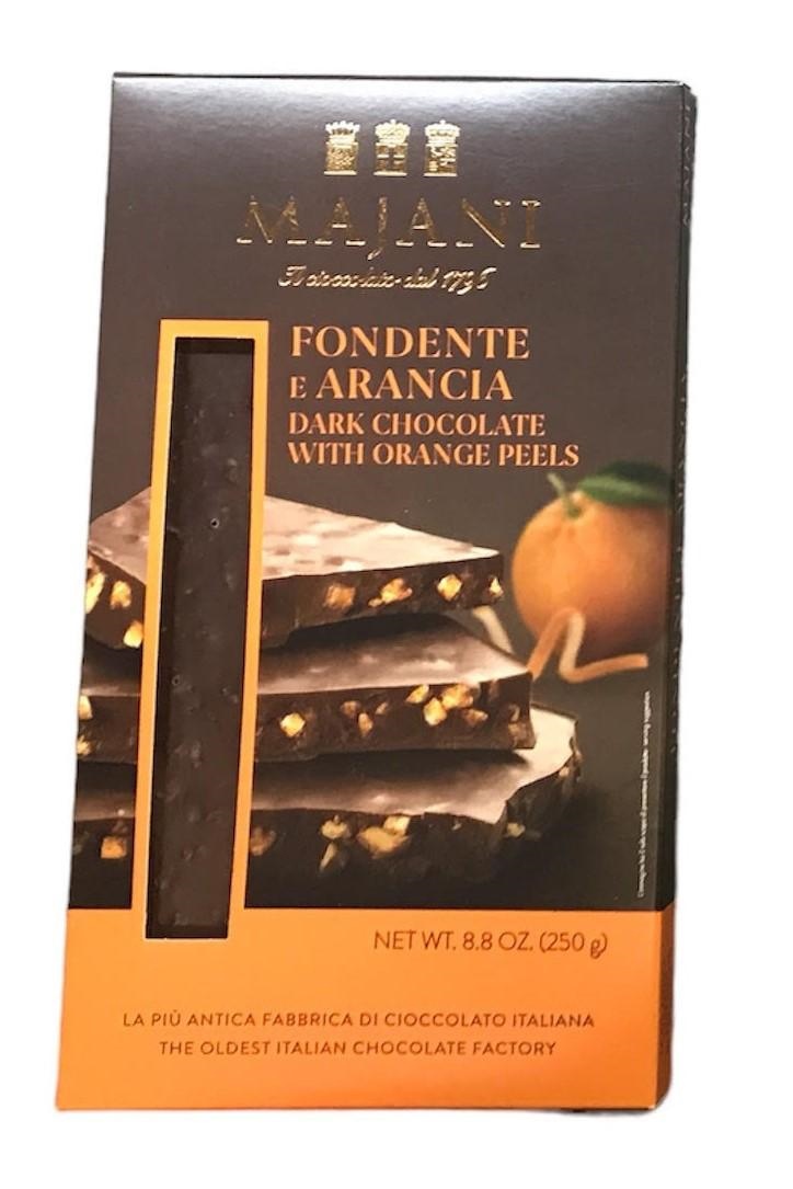Finissimo Cioccolato fondente extra (cacao 53%) con scorze di arancia candite (6%)