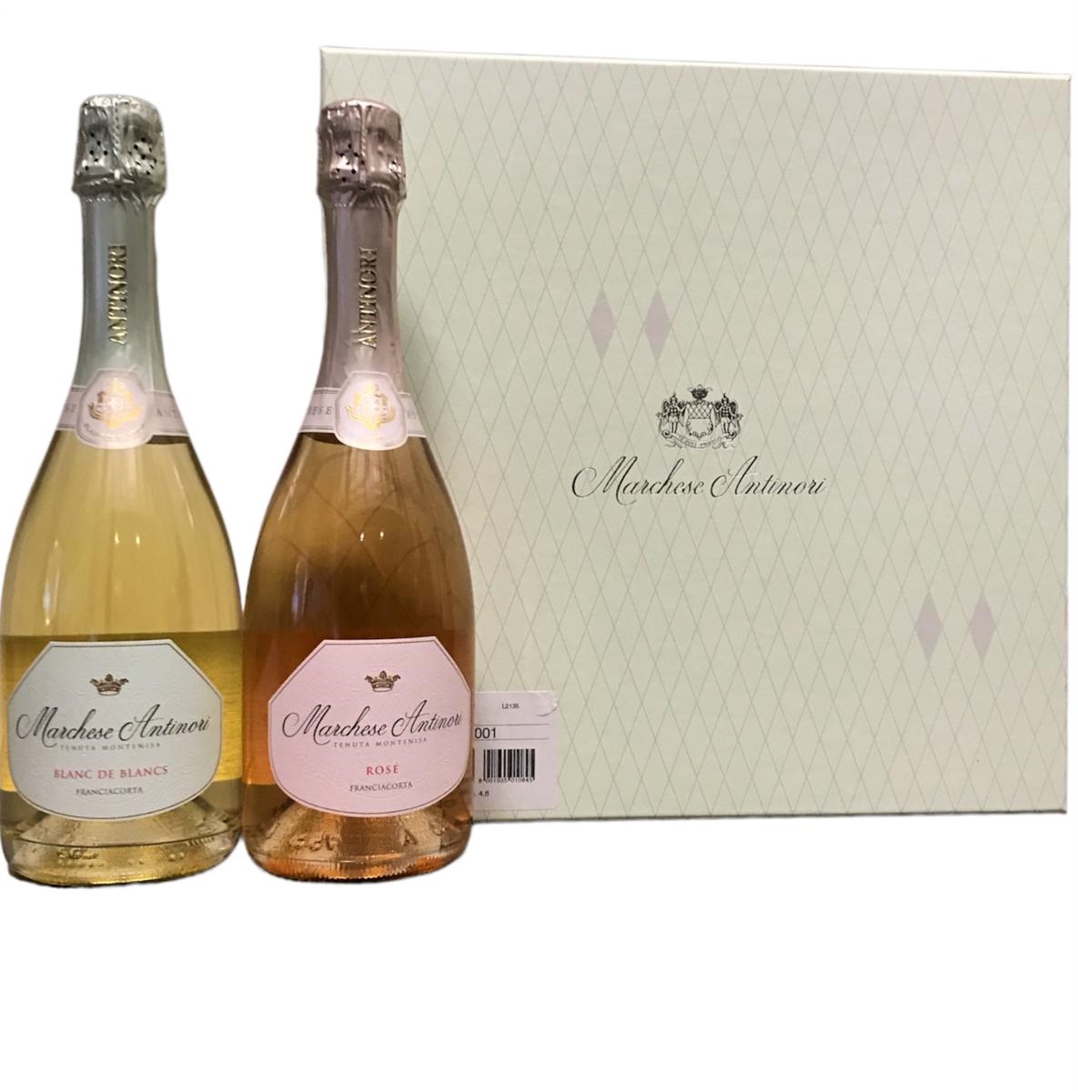 Cofanetto con una bottiglia di Rosè e una di Blanc de Blancs.