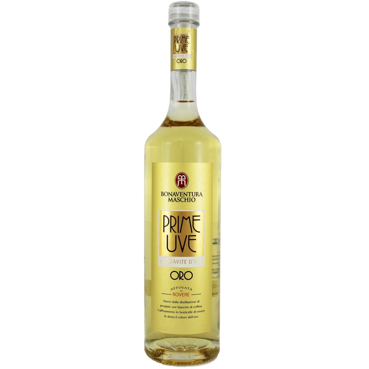 Prime Uve Oro Formato bottiglia: cl.70 Gradazione alcolica: 39% vol. Prodotto in Italia. Questo originale distillato nasce da pregiate uve bianche di collina, colte a maturazione inoltrata e lavorate secondo un metodo esclusivo, in cui la distillazione fatta sottovuoto garantisce l’aromaticità originaria. In seguito viene ingentilito da un periodo di affinamento in botti di legno. Si consiglia di servirlo ad una temperatura di cantina. Caratteristiche organolettiche Profumo: evidenti sensazioni fruttate e floreali, unite a un fine sentore di miele. Gusto: pieno, aromatico, originale.