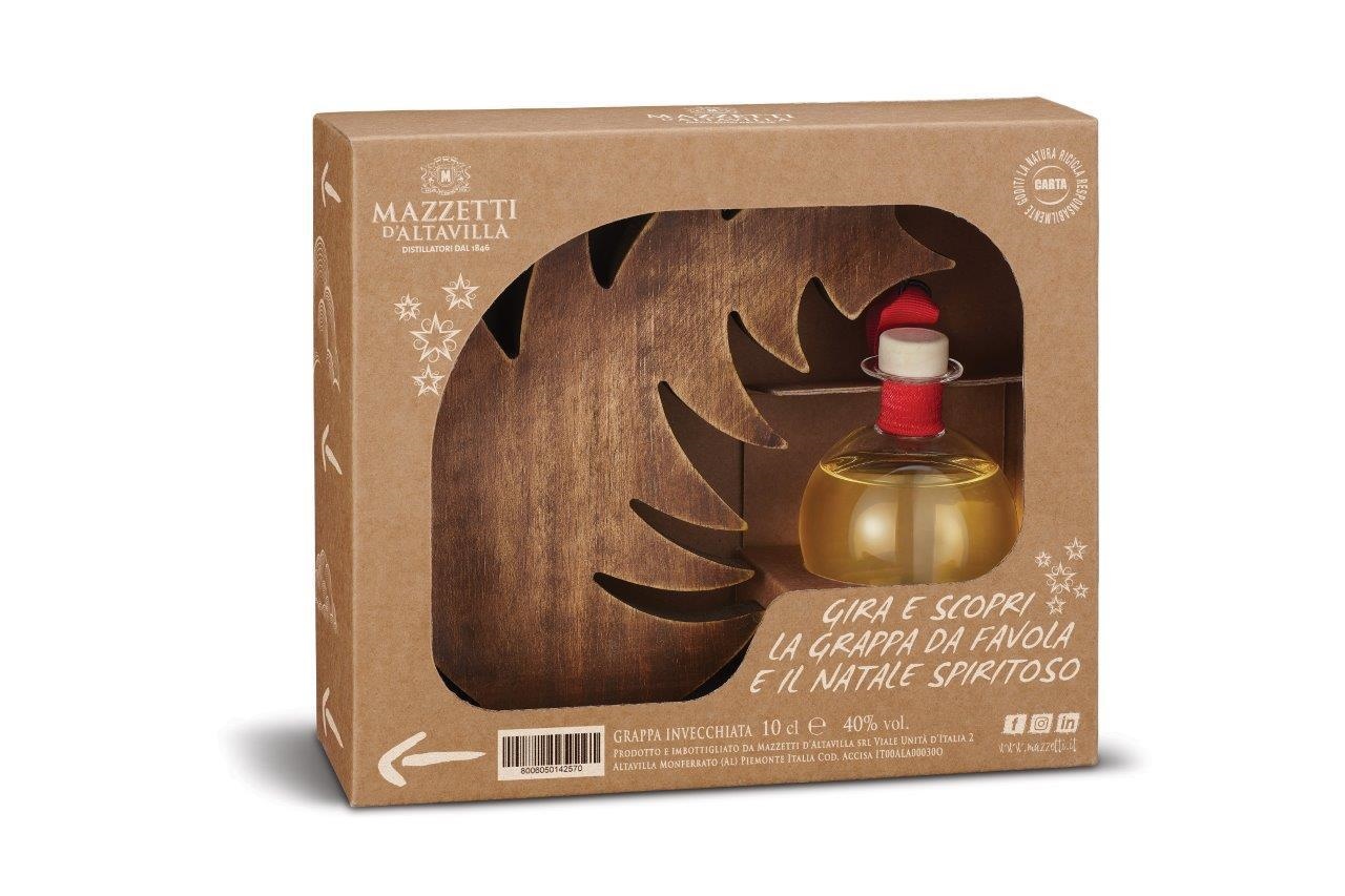 Una leggenda contadina del Monferrato narra che, nel paese in cima alla collina, un Babbo Natale Spiritoso addobbava gli alberi con gocce di un magico distillato che scaldava il cuore e faceva sorridere l’anima. Da quella notte, in quel paese in cima alla collina è tradizione augurarsi un Buonissimo Natale. Albero in legno con pallina di Grappa Invecchiata! GRADAZIONE: 40%