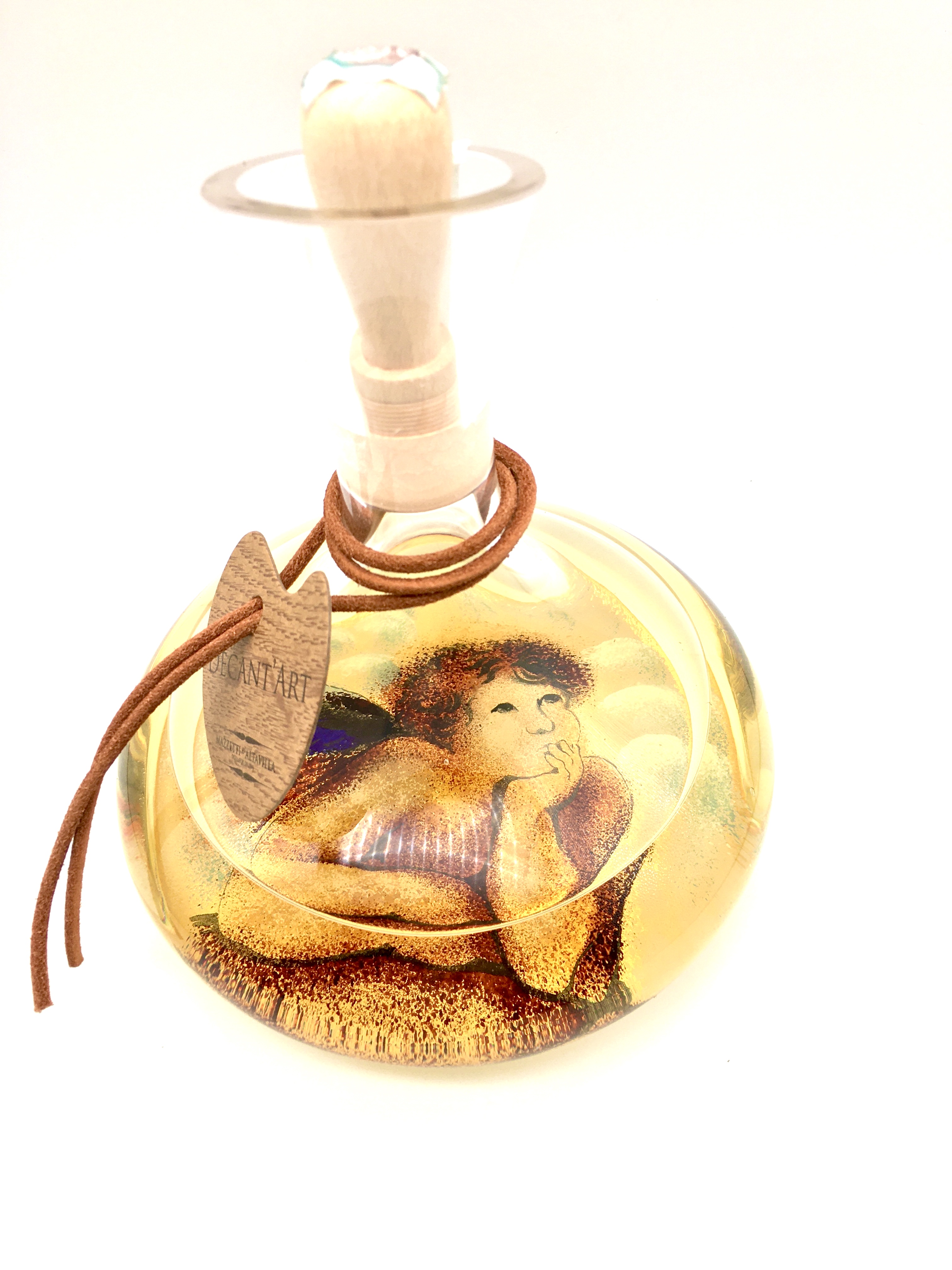Formato bottiglia: cl.70 Vitigno: Nebbiolo da Barolo Valutazione olfattiva: Ampia, ricca e persistente, imponente Confezione: 2 calici tumbler, Cassetta in legno Gradazione: 43%vol. Provenienza: Langhe e Roero L’angioletto di Raffaello Sanzio dipinto a mano su questo decantatore in vetro cristallino soffiato. Un articolo da collezione, un articolo speciale per un occasione altrettanto speciale! Un pensiero da concedersi e da regalare, per decantare in compagnia un distillato d’eccellenza grazie ai due calici abbinati al prezioso decanter. Il tutto racchiuso in un pregiato cofanetto in legno.