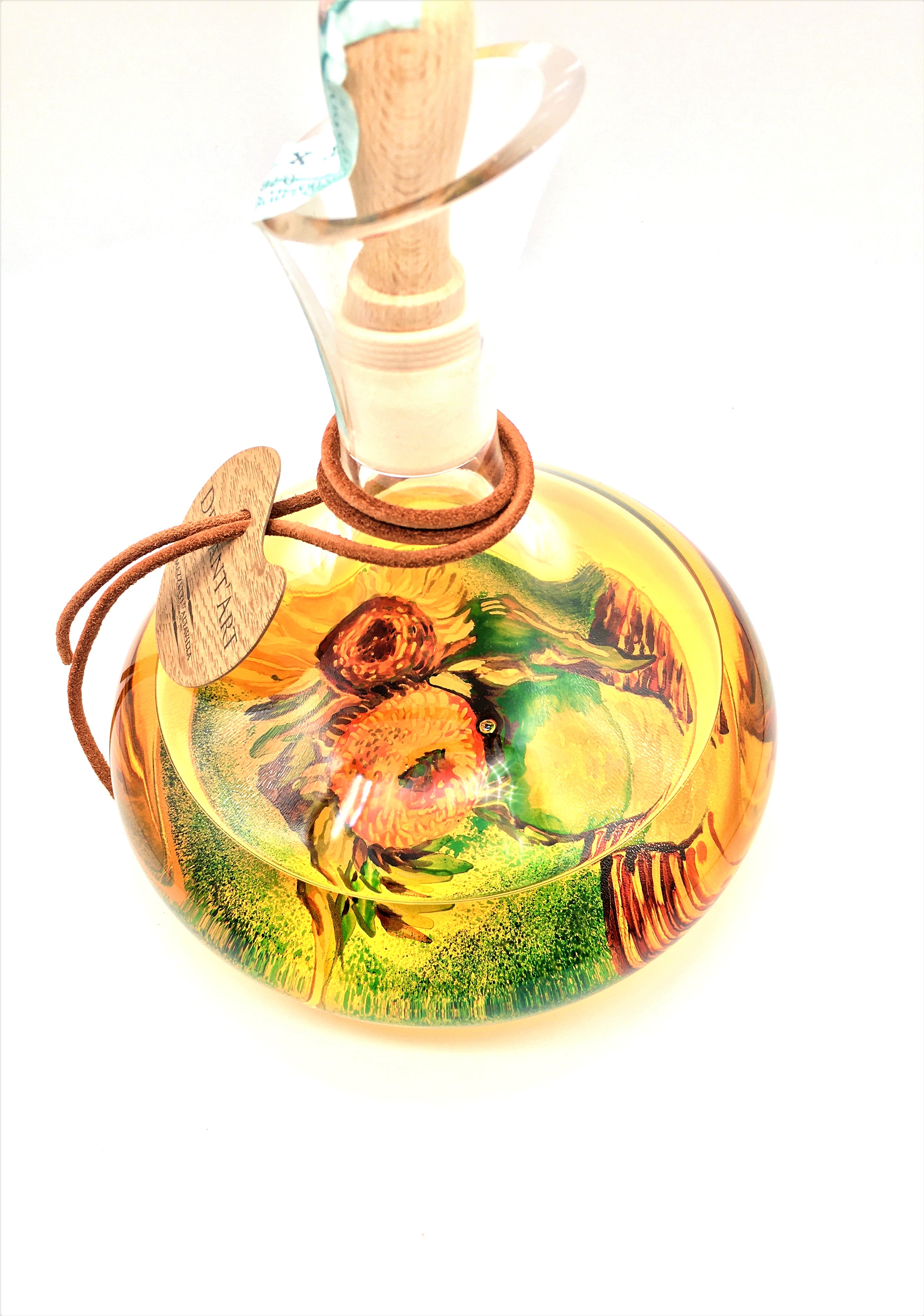 Formato bottiglia: cl.70 Vitigno: Nebbiolo da Barbaresco Valutazione olfattiva: ampia, equilibrata Confezione: 2 calici tumbler, Cassetta in legno Gradazione: 43% vol. Provenienza: Langhe e Roero ‘I Girasoli’ di Van Gogh dipinto a mano su questo decantatore in vetro cristallino soffiato. Un articolo da collezione, un articolo speciale per un occasione altrettanto speciale! Un pensiero da concedersi e da regalare, per decantare in compagnia un distillato d’eccellenza grazie ai due calici abbinati al prezioso decanter. Il tutto racchiuso in un pregiato cofanetto in legno.
