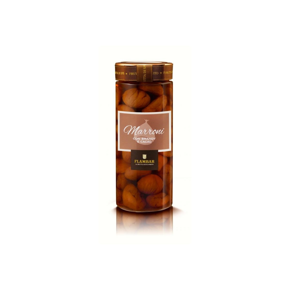 Vaso goloso di marroni con Brandy e Cacao. Gradazione alcolioca: 10% Formato:760 gr. Flambar da cinquant’anni è presente nelle più rinomate pasticcerie con la sua gamma di impareggiabile frutta al liquore. La nostra frutta viene accuratamente selezionata e calibrata, raccolta fresca in stagione, per poter dare nella lavorazione tutto il suo meglio. Un nome che è ormai leggenda, una garanzia di qualità, di raffinatezza ed eleganza, cura attenta della forma ma soprattutto della sostanza. Puntiamo sulla qualità e non sulla quantità, secondo la nostra filosofia: i migliori prodotti per i palati migliori.
