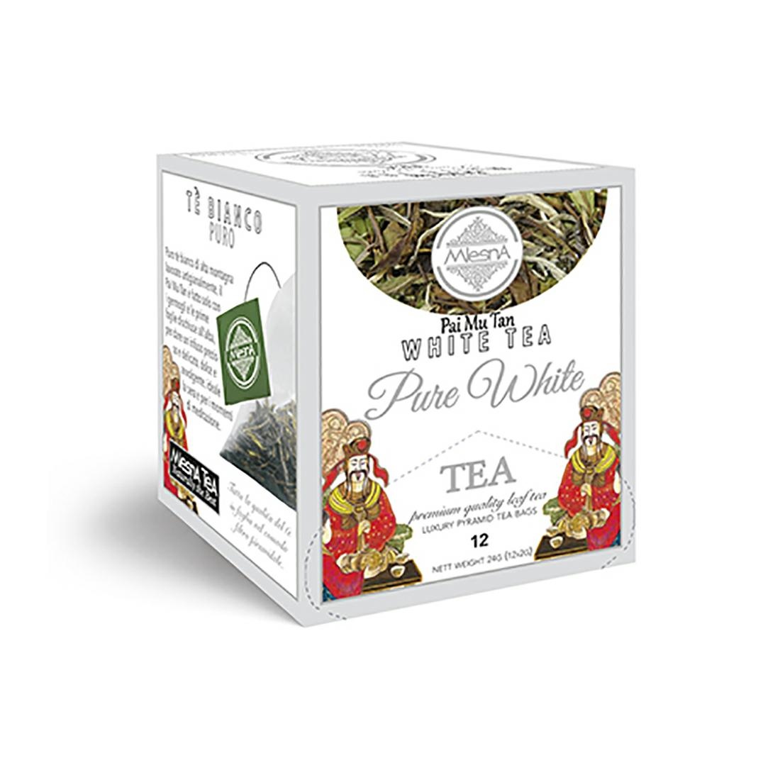 12 filtri piramidali salvaroma. Puro tè bianco di alta montagna lavorato artigianalmente: il Pai Mu Tan è fatto solo con i germogli di tè appena dischiusi raccolti all'alba ed essiccati secondo l'antica tecnica imperiale cinese. Un infuso prezioso e delicato, dolce e avvolgente, ideale la sera e per i momenti di meditazione.