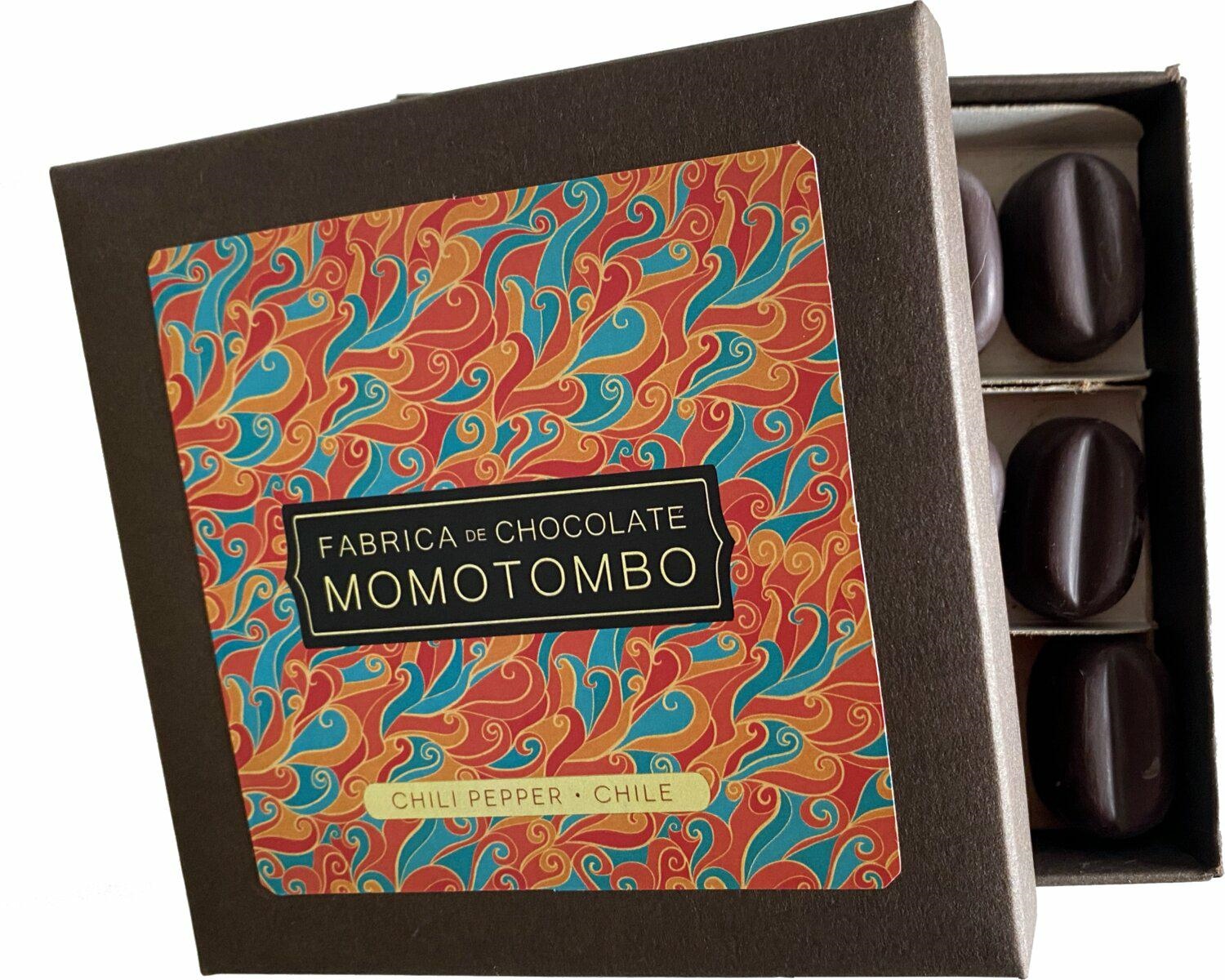Cioccolatini fondenti monorigine cacao Nicaragua 70% con peperoncino. Stuzzicanti cioccolatini al peperoncino che arricchisce il cioccolato fondente del suo aroma, creando un gusto che conquista e sorprende. In confezioni da 15 unità sono perfetti da abbinare ai momenti più suggestivi. Da gustare in compagnia... anche di un buon rum invecchiato. Ingredienti: fave di cacao, zucchero di canna, burro di cacao, peperoncino. Può contenere tracce di frutta a guscio e latte. Peso: 90gr Note di conservazione: conservare in ambiente fresco e asciutto 13-18°C Dimensioni prodotto: cm. 10,5x10,5x3h Valori Nutrizionali: Energia 604 kcal/2528 kj Grassi 42,8 g/saturi 24,8 g Carboidrati 44,7 g/zuccheri 25,2g Proteine 10,0 g Sale 3 mg