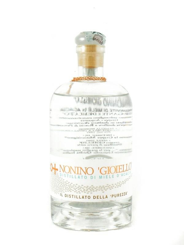 Formato bottiglia: cl.70 Materia Prima: Miele d’Acacia Distillazione Artigianale: Discontinua, con il taglio delle teste e delle code, in alambicco in rame a vapore. Gradazione: 37% vol. Imbottigliamento: In bottiglie vecchia farmacia da 100, 350 e 700 ml, non manuale. Degustazione: Va servito a 10°C o in bicchiere ghiacciato aperto a corolla di tulipano. Gusto: Elegante, delicatissimo Con astuccio. 3 Aprile 2000: dopo anni di ricerche, Cristina, Antonella ed Elisabetta Nonino presentano GIOIELLO il Distillato della 'Purezza', l'Acquavite ottenuta dalla distillazione del solo miele in tutte le sue varietà di gusti. La distillazione del miele presenta difficoltà soprattutto nella fase della fermentazione che varia da miele a miele. Solo la grande esperienza maturata in tanti anni di lavoro ha consentito alla Famiglia Nonino di ottenere questo nuovo straordinario Distillato. Oltre alla difficoltà nella fermentazione i Nonino hanno dovuto superare anche ostacoli burocratici dovuti all'origine della materia prima: il miele che non avendo provenienza vegetale non era regolamentato. Per mettere in commercio il Distillato di miele i Nonino hanno dovuto chiedere al Ministero competente la pubblicazione relativa alla regolamentazione del distillato di miele sulla Gazzetta Ufficiale.