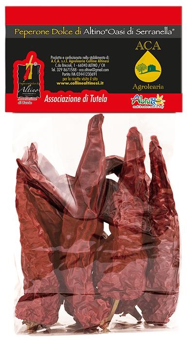 Gr.50 Peperone secco intero L’ antico processo di essiccazione naturale viene integrato con un passaggio all’interno di un essiccatore a temperatura e ventilazione controllata. Si ottiene così un prodotto unico, ricercato e utilizzabile in svariate ricette.