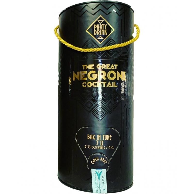 BagInBox 3 litri. Gradazione alcolica: 25% vol. Negroni Party Drink è un cocktail ottenuto da una calibrata miscela di vermouth Gran Bassano Rosso, gin Marconi 46 e bitter Super Taurus. Le note dolci, secche e amaricanti di questi tre prodotti si fondono in maniera armonica in un cocktail dal carattere intenso e aromatico. La praticità del Bag in Tube vi permetterà di erogare la giusta quantità di cocktail già pronto, senza che questo si ossidi, in quanto la tecnologia brevettata con la quale è costruita la sacca contentente la miscela rimane sempre sottovuoto. Non vi serve altro che un bicchiere, del ghiaccio, una scorza d'arancio e del selz o acqua frizzante per completare il cocktail!