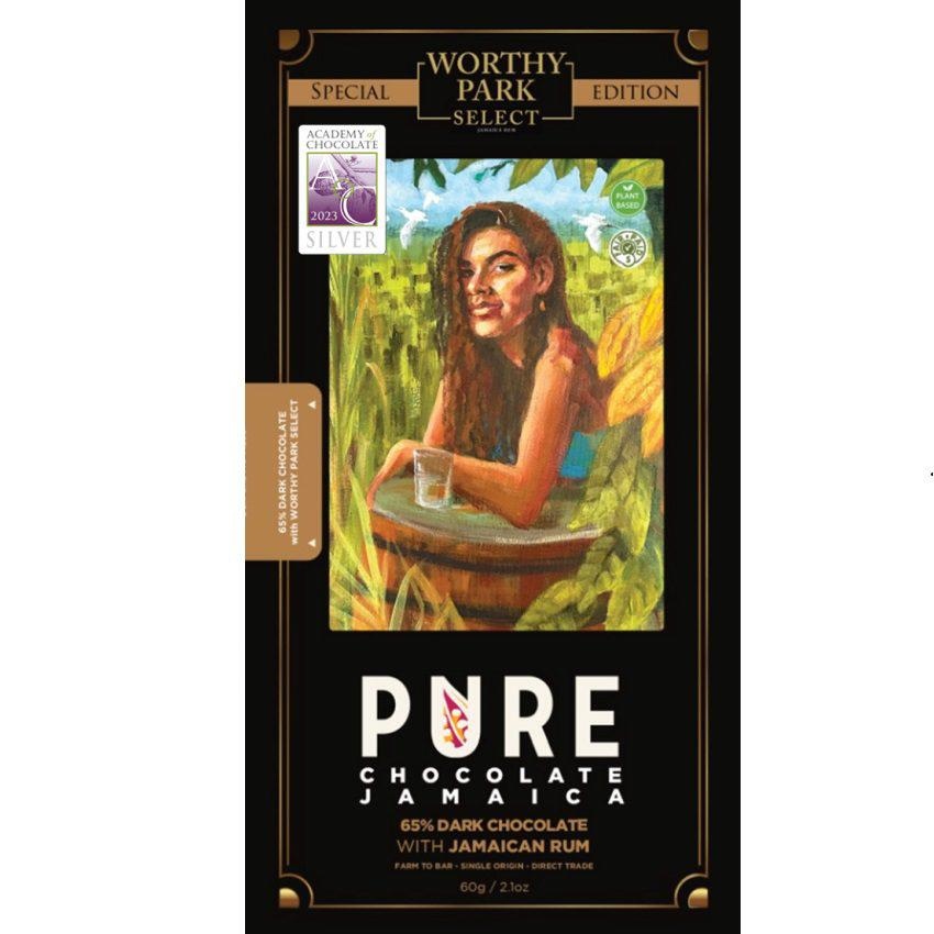 Gr. 60 Pure Chocolate - Cioccolato Fondente 65% Cacao con rum di Giamaica Un cioccolato fondente con un pizzico di brivido. La consistenza morbida e cremosa del cioccolato incontra l'aroma ricco e complesso del Rum Select di Worthy Park. Un'esplosione di sapori per le tue serate con gli amici. Ingredienti: fave di cacao giamaicane di prima qualità, burro di cacao giamaicano, zucchero di canna di Worthy Park, rum di Worthy Park.. Cacao 65% min. Provenienza cacao: Giamaica dalla piantagione di Dennis Bodie. Può contenere tracce di frutta secca, a guscio e latte. Abbinamenti: Rum scuro Premi: Accademy of Chocolate - Bronzo 2021 Note di conservazione Conservare in ambiente fresco e asciutto 13-18 °C Valori nutrizionali: Energia 2299 KJ/ 550 Kcal, grassi 34 g / saturi 20 g, carboidrati 57 g / zuccheri 32 g, proteine 9 g, sale 0 mg. Dimensioni prodotto: cm15,3x7,3xh1,3