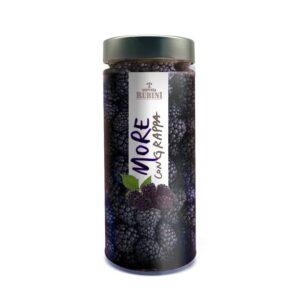 Gr. 580 More con Grappa La frutta sotto spirito rappresenta una deliziosa scelta dove la golosità della frutta incontra il piacere del liquore. Il prodotto deriva dalla lavorazione di frutta interamente coltivata nei terreni aziendali dove viene accuratamente selezionata, tagliata e invasettata manualmente e abbinata a liquori e distillati selezionati di grande pregio. Grazie al nostro processo produttivo, il frutto conserva intatte tutte le sue qualità e il suo sapore distintivo. Il liquore, invece di sovrastare il gusto della frutta, funge da accompagnamento armonioso. Perfetto per completare un pasto o per creare un drink raffinato.