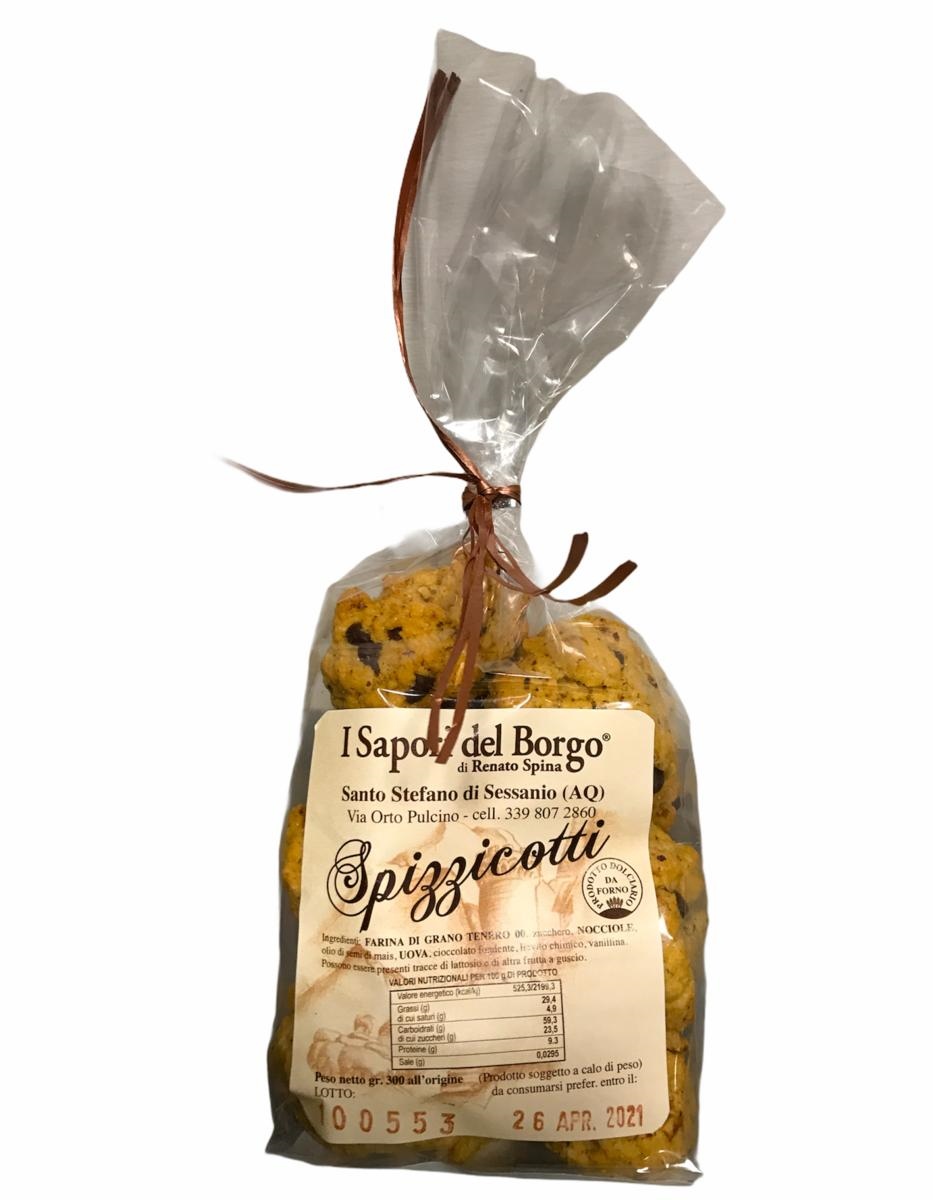 Gr.300 Felice connubio di nocciole e cioccolato, sono una dolce tentazione per bambini e adulti che sanno apprezzare la qualità degli ingredienti. Ingredienti: farina “00”, zucchero, nocciole, olio di semi di mais, uova, cioccolato fondente, lievito, vanillina Conservanti: Nessuno Allergeni: farina”00”, nocciole, uova.