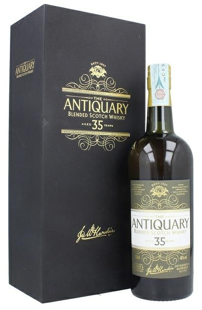 Formato bottiglia: cl.70 Con cofanetto. Edizione limitata a sole 800 bottiglie Antiquary 35 YO è una miscela di oltre 30 whisky con una forte predominanza di single malt. Imbottigliato a 46% e non filtrato a freddo. Note di Degustazione Colore: Legno antico. Aroma: Miele e bacche all’inizio. Mela cotta, vaniglia e spezie del legno con note di cera per mobili. Vibrante e fresco nonostante l’età rivela un lieve fumo d’erica insieme a scorza d’arancia violetta di Parma. Palato: Caramello intenso con pasticceria dolce, frutti tropicali e bacche. Sentori di pelle lucidata e note di legno sono controbilanciati da freschi toni di agrumi e spezie. Malto e delicate note pepate. Finale: Caramello e aromi fruttati con tracce di spezie del legno.
