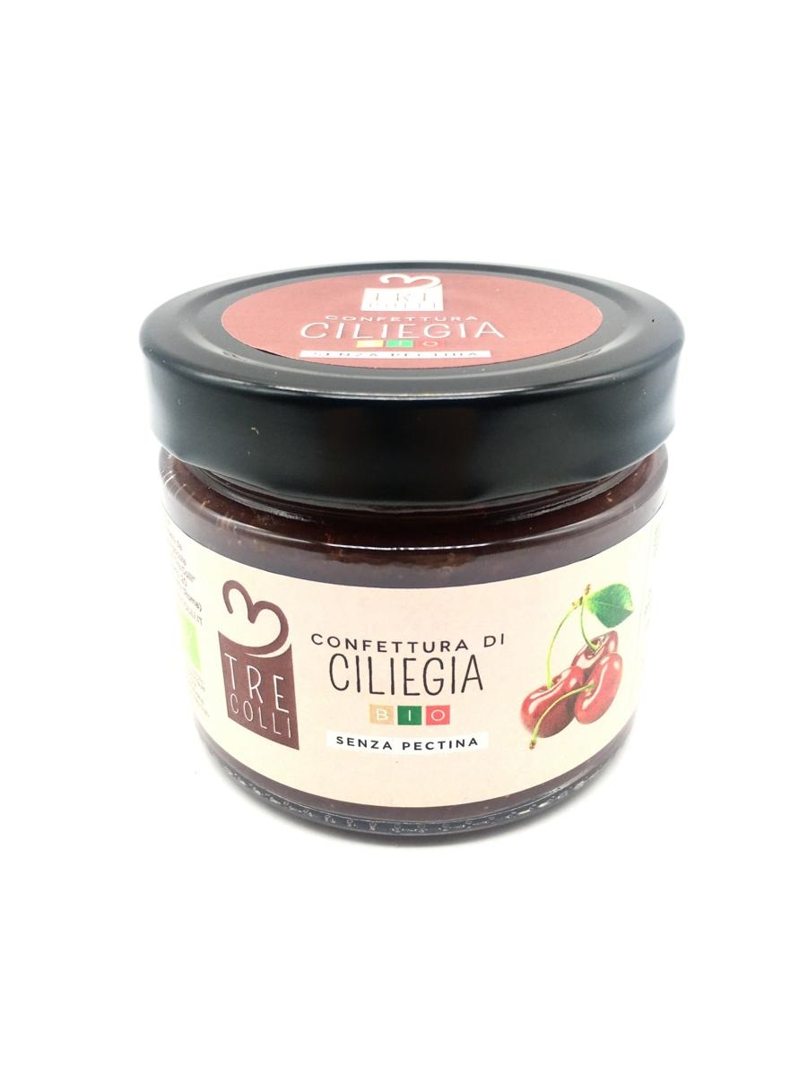 Gr.300 Una confettura dal gusto autentico e genuino! Prodotta con ingredienti semplici, rigorosamente biologici, conserva tutto il sapore delle ciliegie prodotte dall'Azienda Agricola biologica Tre Colli, che da decenni a scelto di seguire la strada della coltivazione biologica nel territorio della Sabina Romana. Senza l'aggiunta di pectina come addensante e con pochissimo zucchero di canna, è una vera esplosione di sapori! Ingredienti: ciliegie bio, zucchero di canna bio, frutta utilizzata 140gx100g