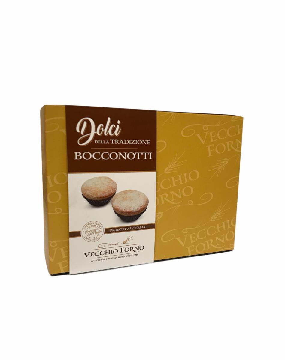 Gr.200 La zona di origine del bocconotto è quella del comune di Castelfrentano, anche se la sua preparazione è ormai molto diffusa nei comuni del chietino. La prima menzione ufficiale del bocconotto si trova nel Vocabolario Abruzzese di Domenico Bielli sotto la voce BUCCUNOTTE, un involucro morbido di frolla ripieno con un impasto di cioccolato e mandorle, le cui prime origini risalgono al lontano 1700, in concomitanza con l’arrivo della pianta del cacao dalle Americhe. Dai mille ripieni, il bocconotto frentano vanta una sfaccettatura di ricette infinita e ogni cuoco o pasticciere decanta la propria versione. A giudicare la bontà del prodotto sarete solo voi con i vostri assaggi. Questo dolce morbido si accompagna bene per piccole feste, incontri e thè pomeridiani.