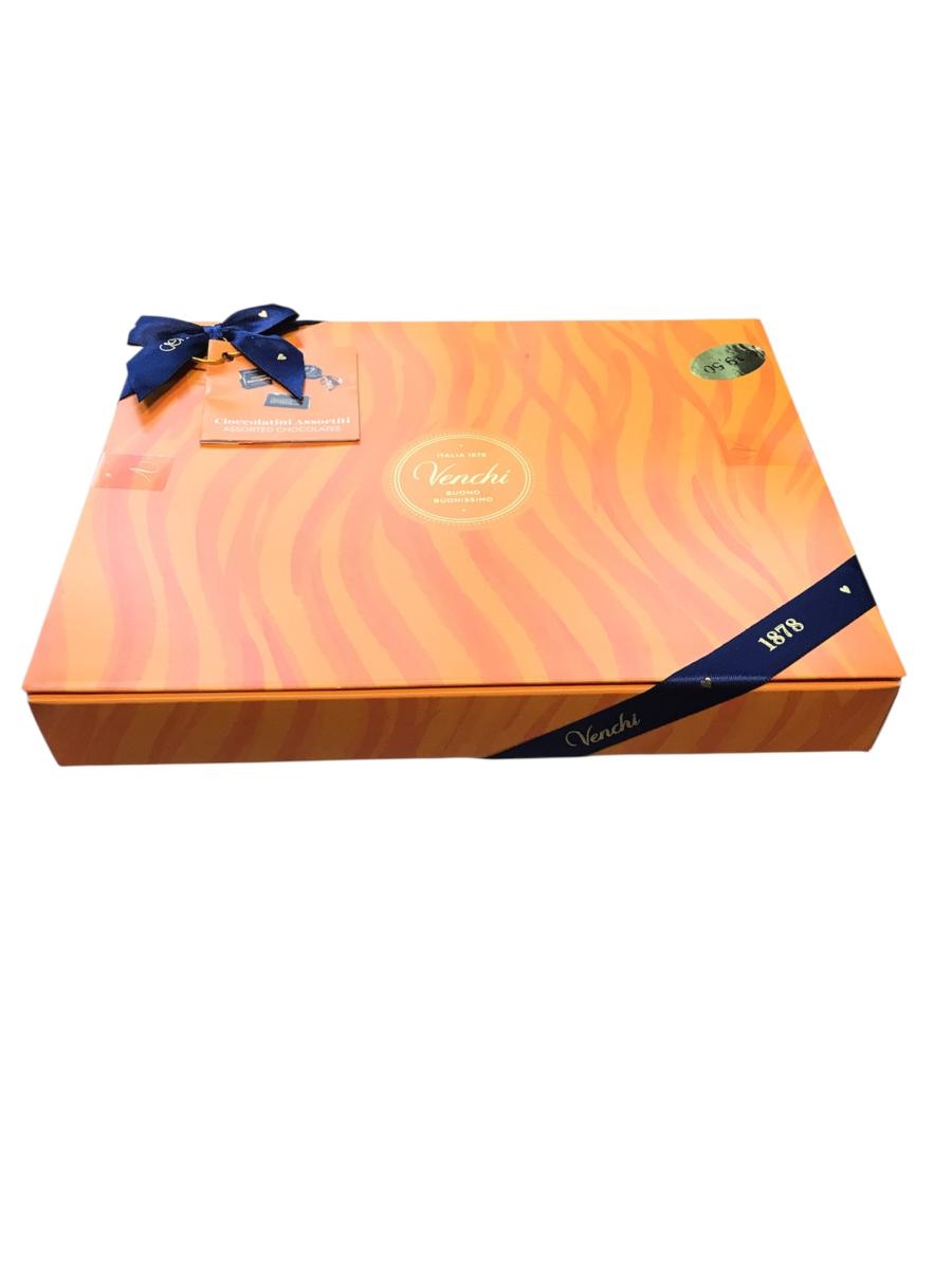 Gr. 180 Confezione regalo cioccolatini assortiti. Senza glutine Ingredienti: massa di cacao, zucchero, burro di cacao, pasta di mandorle, cacao in polvere, granella tostata di fave di cacao, nocciola Piemonte IGP, emulsionante: lecitina di soia, aroma naturale di vaniglia. Contiene/ può contenere tracce di: latte, soia, frutta a uscio.