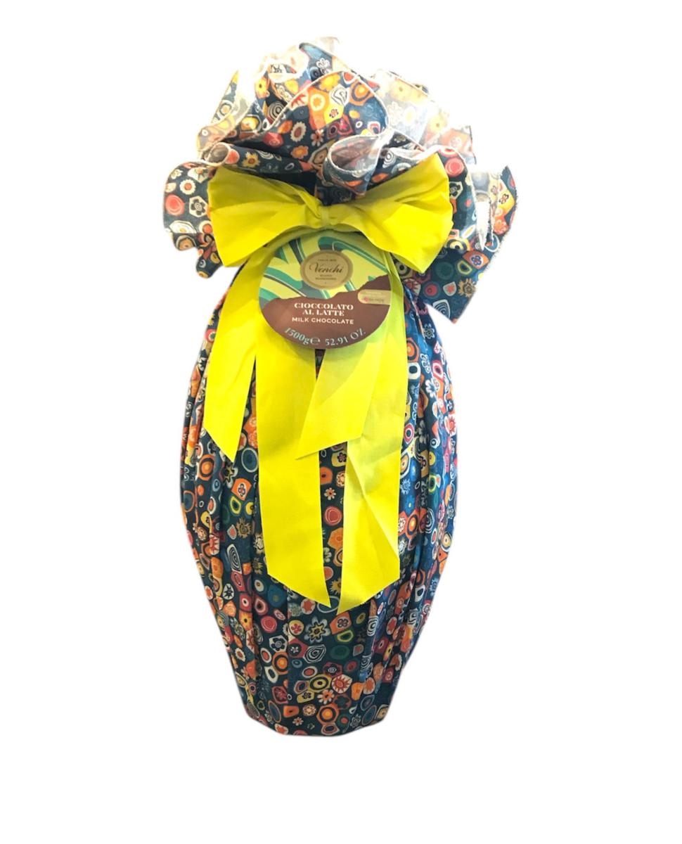 Uovo di Pasqua di cioccolato al latte (1500g). Questo uovo è incartato in una raffinata tovaglia. INGREDIENTI CIOCCOLATO AL LATTE (CACAO: 31,8% MIN.). SENZA GLUTINE INGREDIENTI: Zucchero, LATTE intero in polvere, Burro di cacao, Massa di cacao, Grasso di LATTE anidro, Emulsionante: lecitina di SOIA, aroma naturale di vaniglia. PUÒ CONTENERE TRACCE DI FRUTTA A GUSCIO.