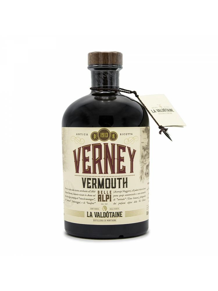 Formato bottiglia: cl.100 Gradazione alcolica: 16,5% vol. Prodotto in Italia. Nel 1786 nasce a Torino il Vermouth. La casa regnante dei Savoia portò in auge questo vino aromatizzato ed in quei tempi diversi erboristi si ingegnarono per individuare la ricetta più gradevole. Quella dell’amaro Verney si ispira ad una scritta nel 1880 ed attribuita a l’Abbé Edouard Berard, botanico vissuto in Aosta nel 1800, che esige la presenza di “vino di montagna”, di “parietta” (Santoreggia) e di “benefort” (Assenzio Maggiore). Al palato è ricco e al naso porta spezie caratteristiche e note aromatiche di “sarieula” (Timo Comune), protagonista dei profumi alpini della Val d’Aosta.