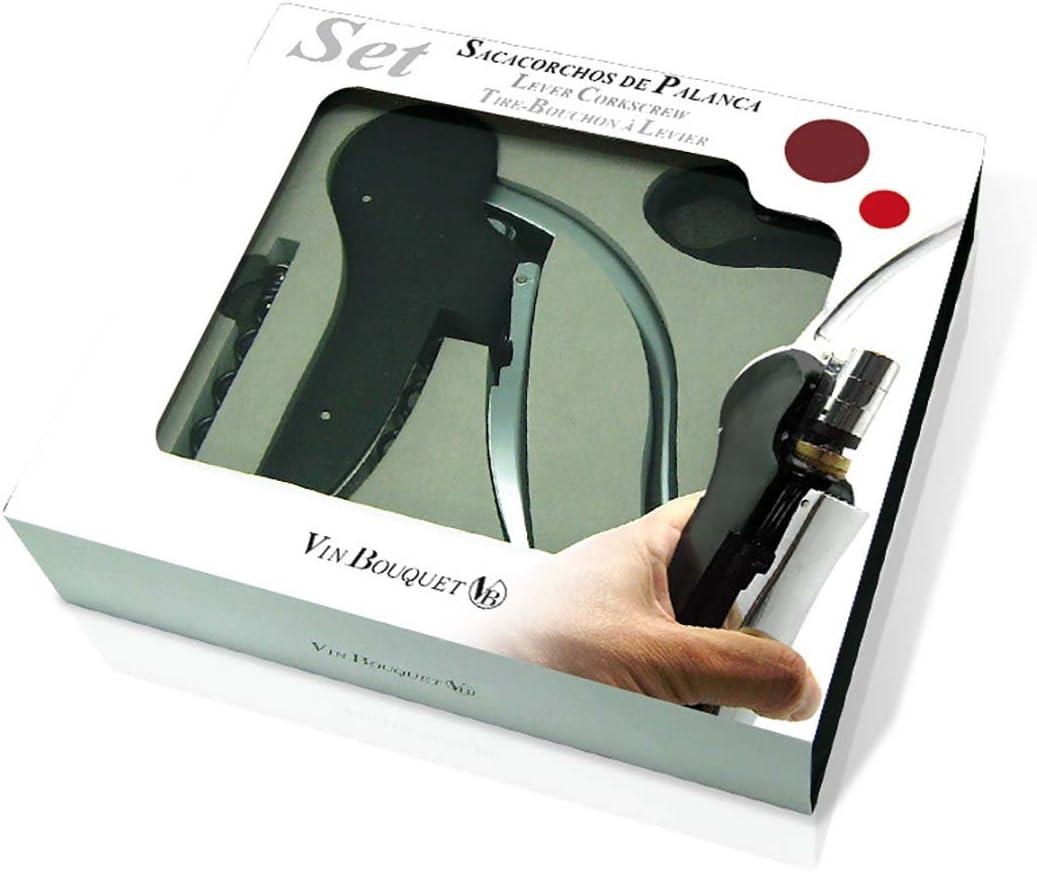 Grazie a questo set molto completo avrai tutto il necessario per aprire il tuo vino preferito con risultati di alta qualità. Include: pratico set cavatappi a leva, apribottiglie e punta di ricambio. Il cavatappi funziona con un classico meccanismo a funzionamento diretto, che garantisce un'apertura rapida dei vostri vini con l'aiuto del decapsulatore.
