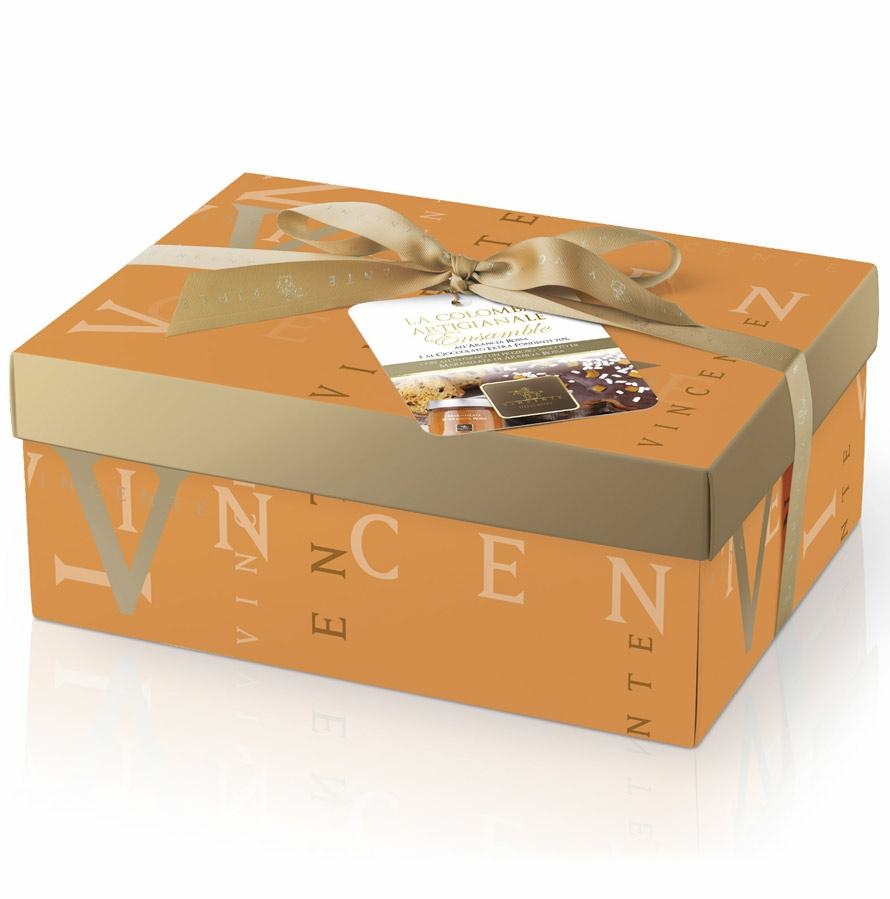 750gr. "Esamble" colomba artigianale cioccolato extra fondonte 70% e arancia rossa senza uvetta + vasetto di marmellata di arancia rossa di Sicilia. Prova una sensazione del tutto nuova. Lasciati tentare dal gusto della passione. Dalla terra di Sicilia le specialità Vincente Delicacies sapranno conquistarvi regalandovi momenti intensi e indimenticabili. Scopri come nasce un sogno Vincente. Dolci delizie di alta pasticceria a base di pistacchi e mandorle, fine cioccolata, frutta secca. Colomba Artigianale Incartata a Mano. Raffinata confezione con coperchio all’interno della quale è posta una colomba ricoperta di Cioccolato Extra Fondente 70% insieme ad un vasetto di gustosa Marmellata siciliana di Arancia Rossa.